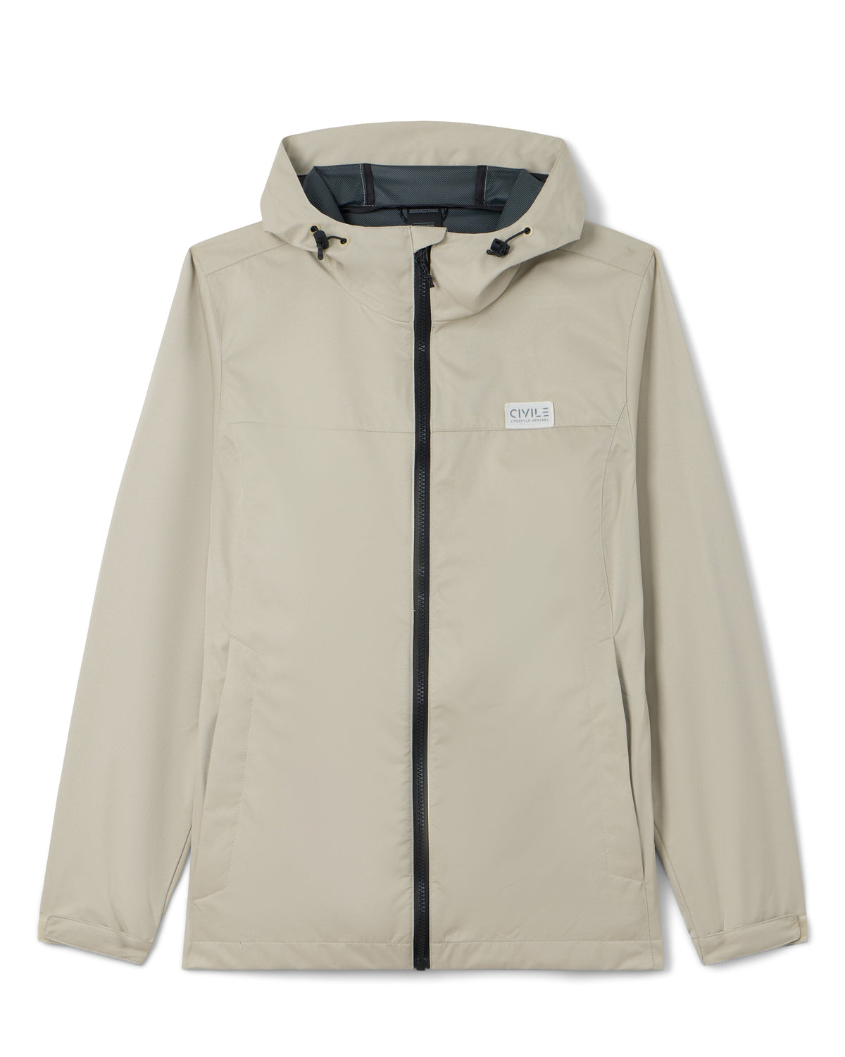 • DETAILS: Durable Water Resistant Tech hooded rain jacket with side zip pockets Adjustable bungee drawcord with toggle 1/2 velcro 1/2 elastic cuff