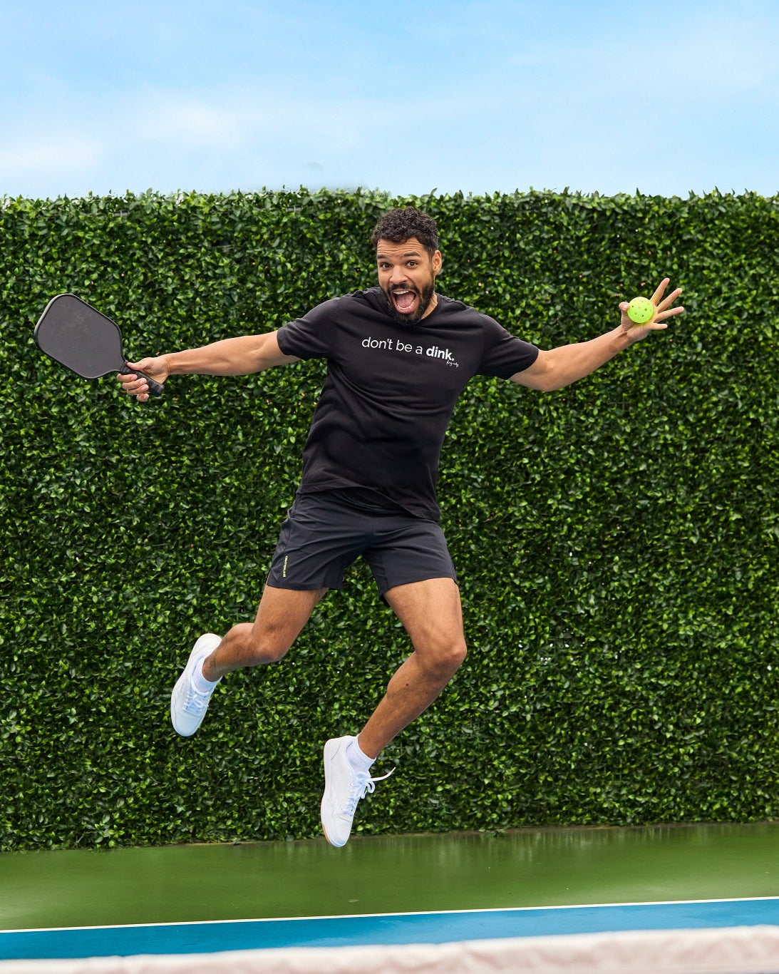 Our ever-popular "Don't be a Dink" graphic, finally available in performance fabric!