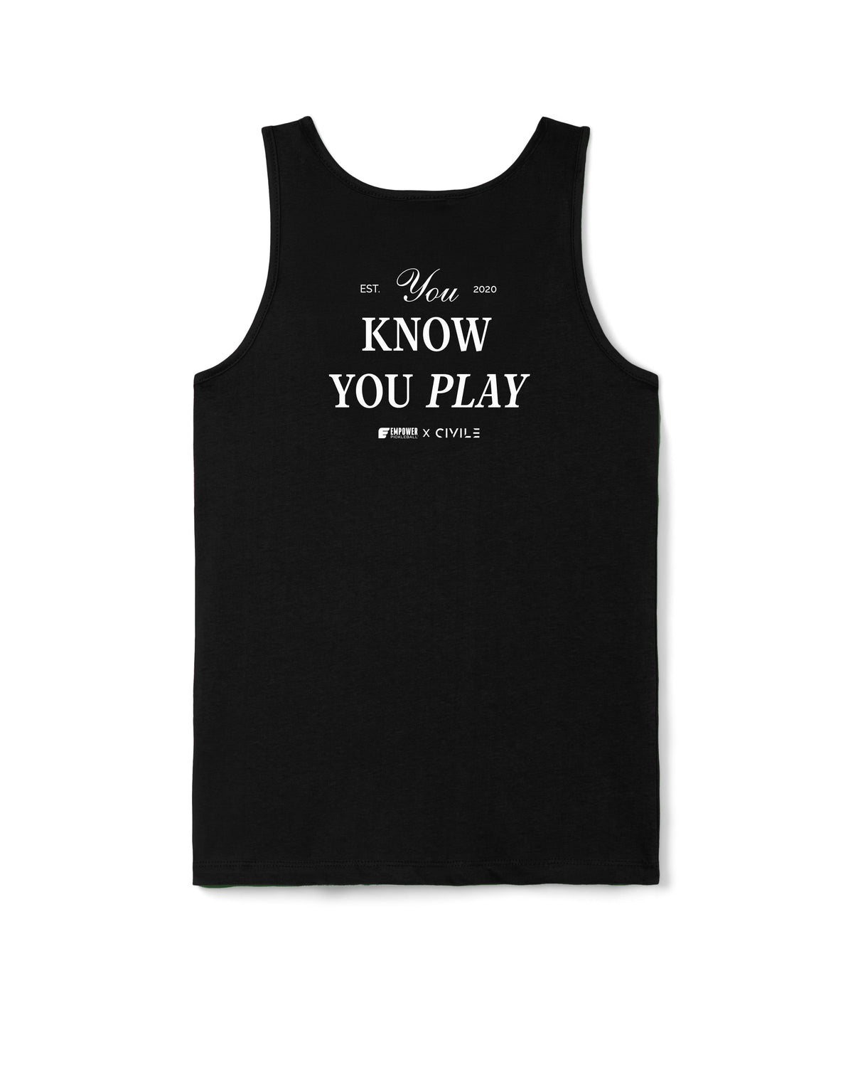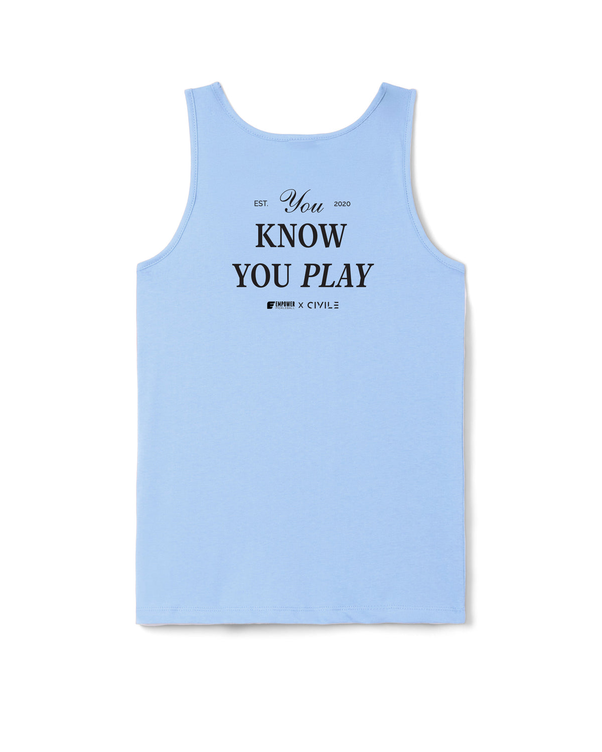 This classic tank is a cheeky reminder that EVERYONE plays pickleball. You know you play, so go ahead and get the gear that announces it! Available in classic Black and Sky Blue.