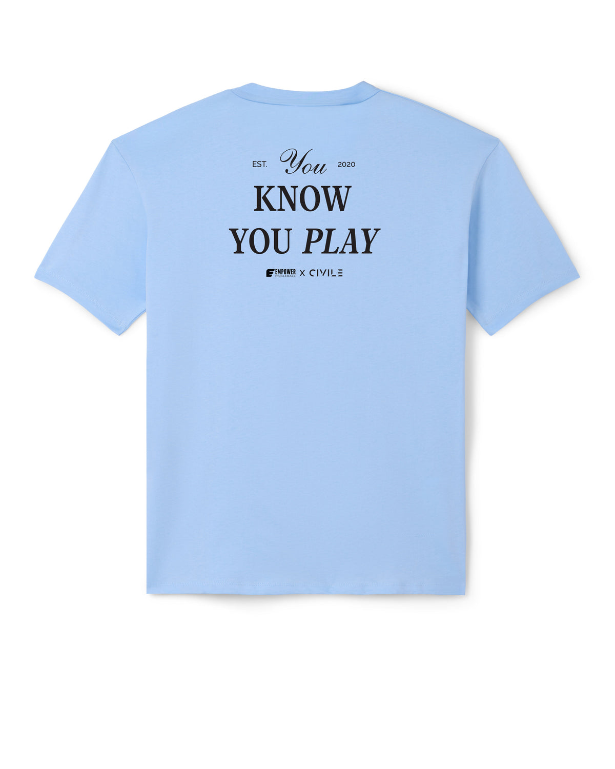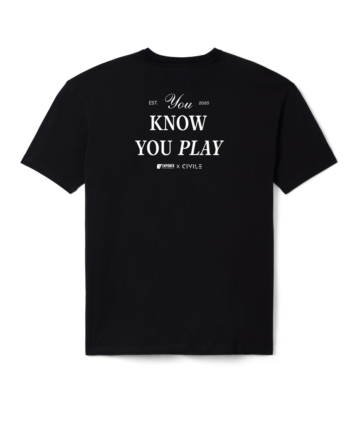 This classic tee is a cheeky reminder that EVERYONE plays pickleball. You know you play, so go ahead and get the gear that announces it! Available in classic Black and Sky Blue.