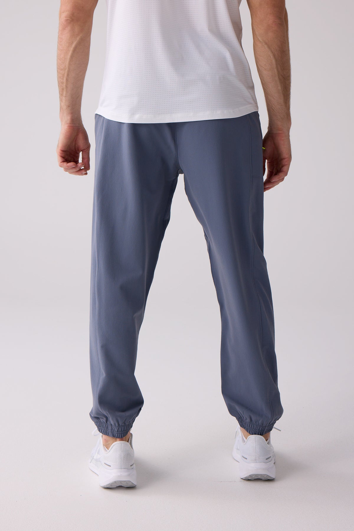 His go-to Courtside track pants, featuring an easy pull-on waistband and relaxed fit for post-game comfort. Soft and comfortable 4-way woven stretch fabric, with secure side seam pockets, a modular card pocket on the right hand side, an additional side "drop in" pocket for easy stash and essential items all add convenient storage. These track pants transition seamlessly from the pickleball court to street.