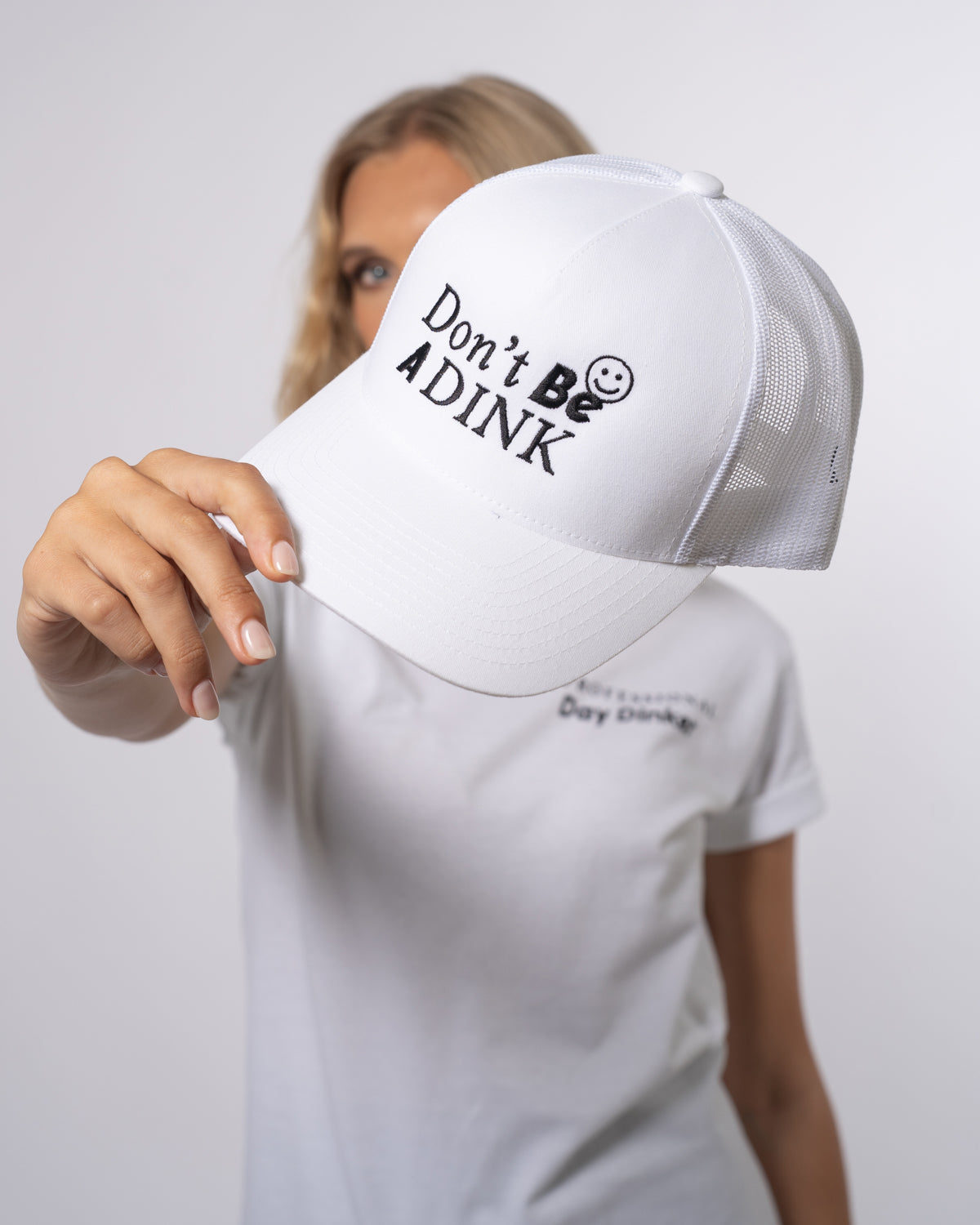 At Civile, we are honored that so many pickleball lovers align with our kind messaging. This new spin on our classic, "Don't be a Dink" graphic, adds an extra smile to your face and those who play with you. Wear it proud in this classic all white trucker that looks great on all!