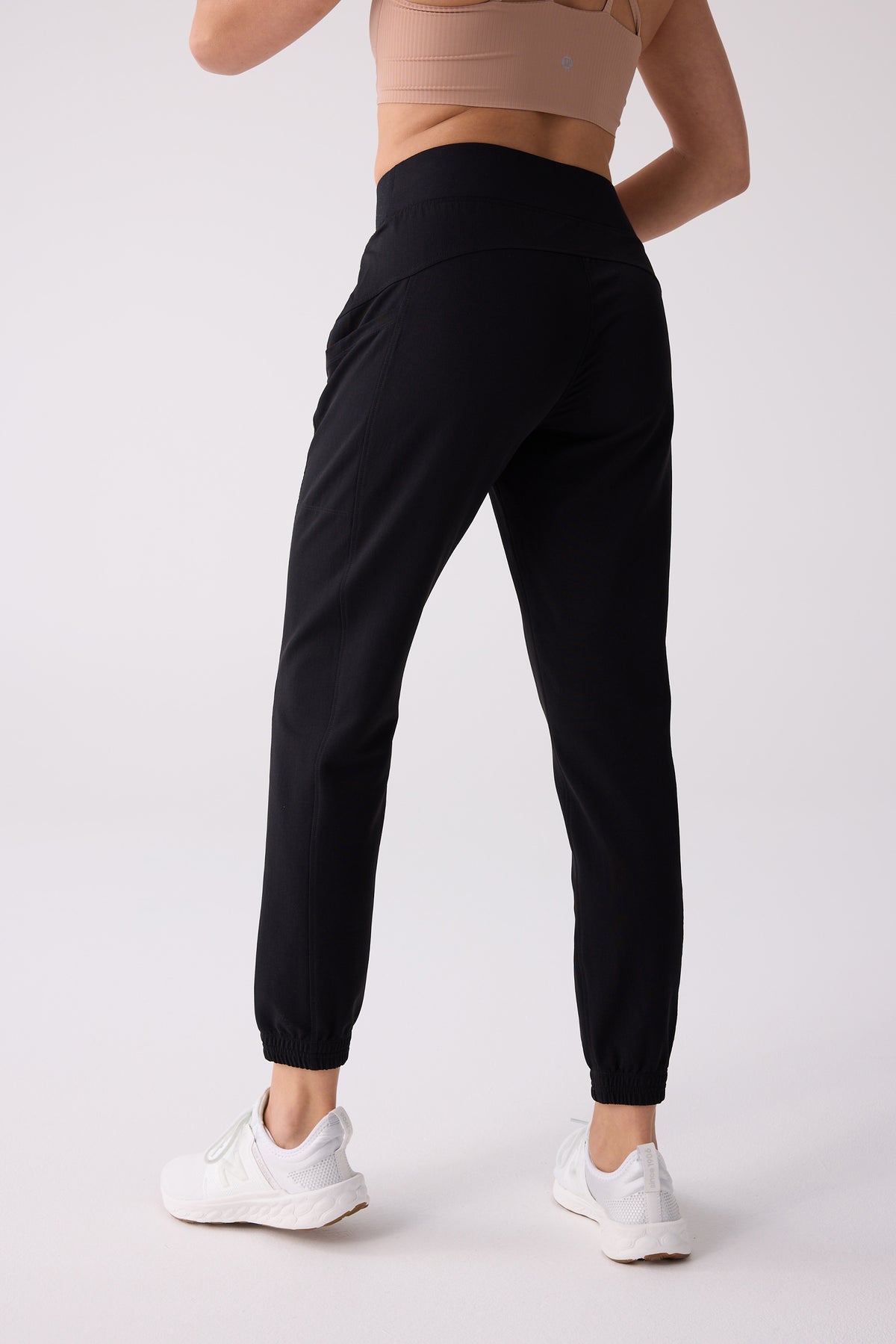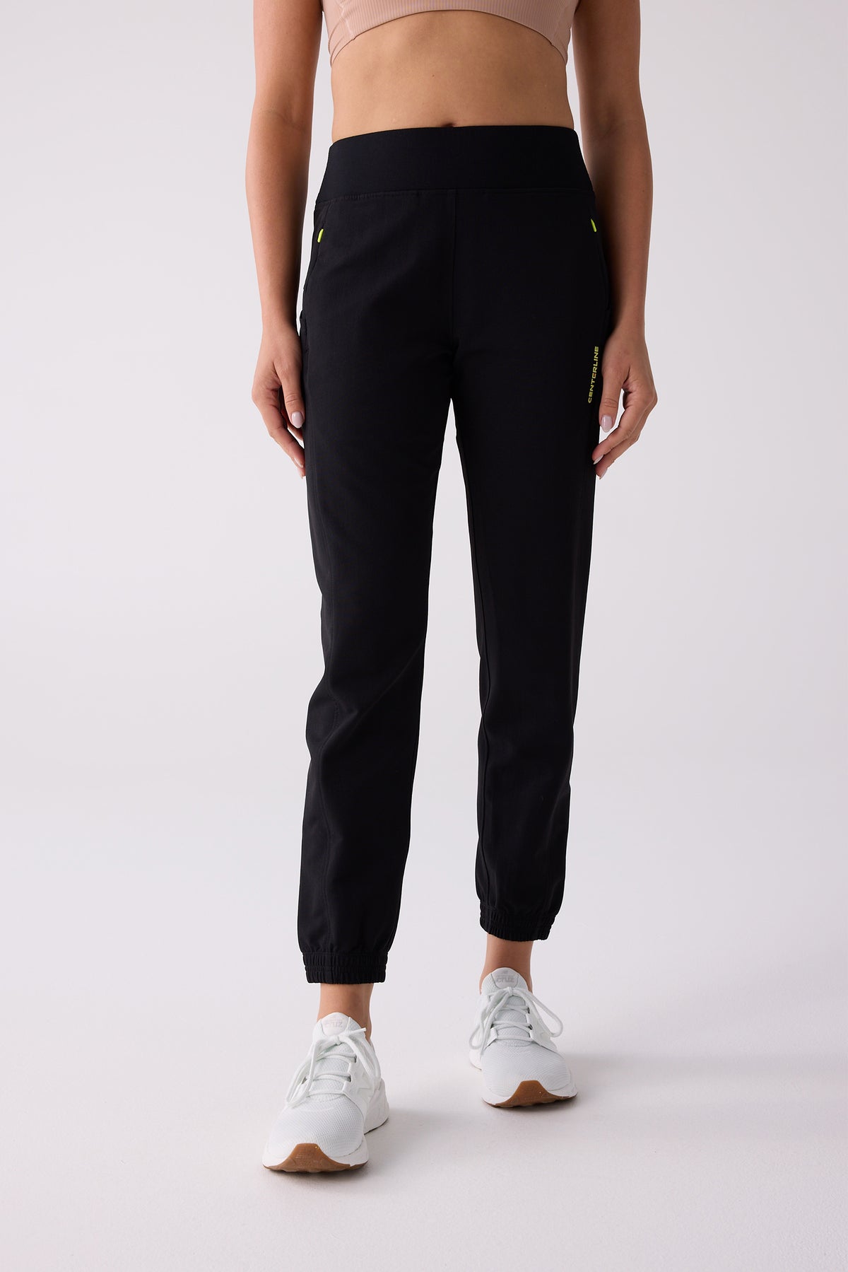 Her go-to Courtside track pants, featuring an easy pull-on waistband and relaxed fit for post-game comfort. Soft and comfortable 4-way woven stretch fabric, with secure side seam pockets, a modular card pocket on the right hand side, an additional side "drop in" pocket for easy stash and essential items all add convenient storage. These track pants transition seamlessly from the pickleball court to street.